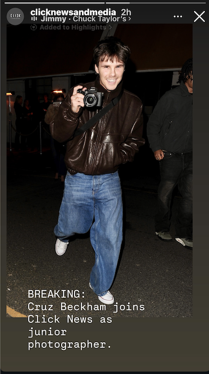 Click News & Media photo agency in London announced this week a boost to their photographer roster naming David Beckham’s son Cruz Beckham as ‘junior photographer’ …looks like they signed him up on a recent night out shooting in town ….good to see the youngsters showing a keen interest in the pap world! HA!
