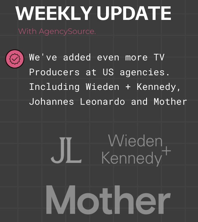 ...this week our database now features TV Producers at top US agencies…